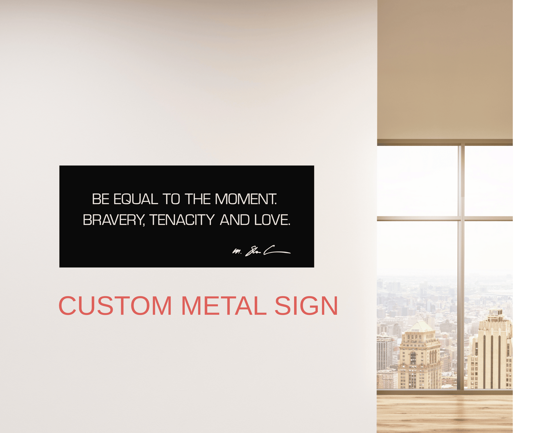 BE EQUAL TO THE MOMENT, CUSTOM METAL SIGN