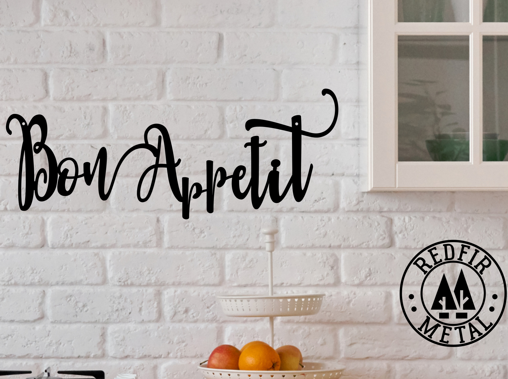 Bon Appetit Metal Sign, Farmhouse Decor, Rustic Raw Metal Word Wall Art, Kitchen, Housewarming Gift