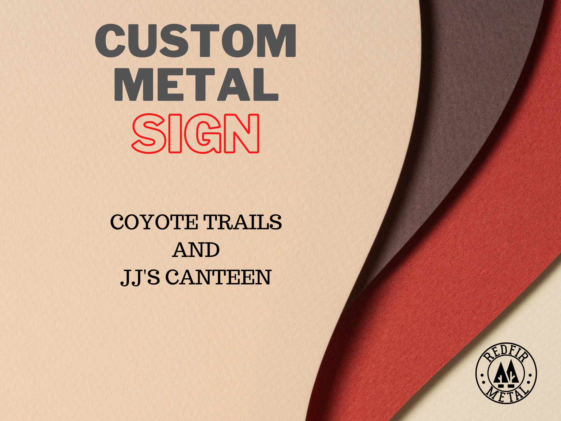 2 metal signs, Coyote Trails Golf Course and JJ's Canteen, using provided logos.
