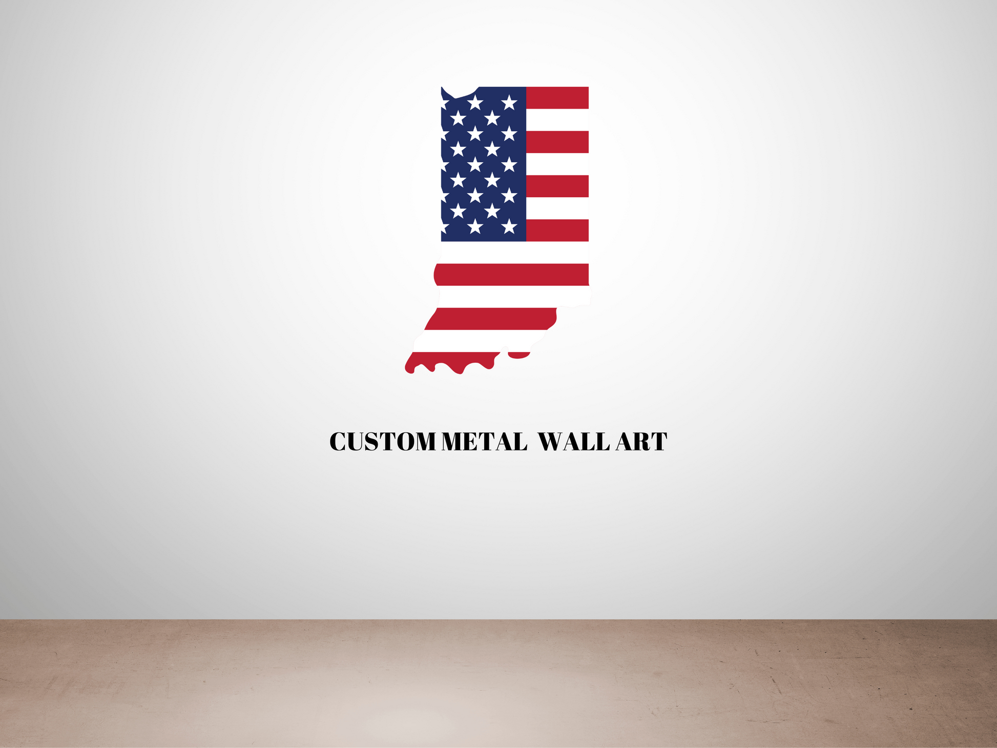Custom metal Indiana shape with US flag colors.